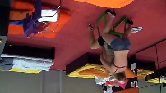 Nude aerobic exercise with a gang of edible honeys