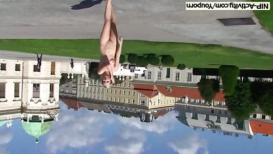Appetizing ash-blonde nude in public streets