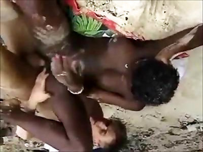 Exploited First-timer Ebony Bi-atch Gets Double Teamed And Used