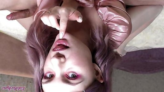 Pink haired Sweetie Gives Muddy Fellatio To Thick Dinky and Guzzles Cum