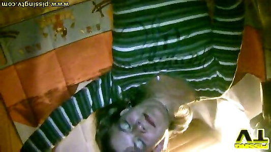 Light haired nymphomaniac Kylie spins her eyes while peeing in the douche