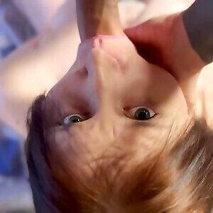 4K Close Up Messy Deep-throat Oral Pleasure & Firm Pulsing Throatpie from Side Point Of View Upside Down