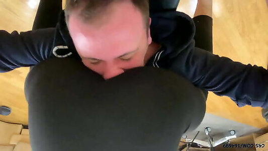Boobs and Pussy Pushed Into His Face Before Giving Him a Handjob and Blowjob