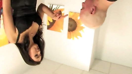 Brunette sucks her flaskbellied spouse and gets faceslapped