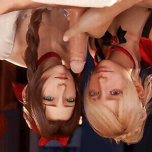 Aerith and Lunafreya gives blowjob