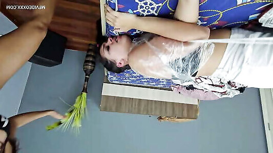 Feel fitness girl&039;s ass, mummification sitting on her face