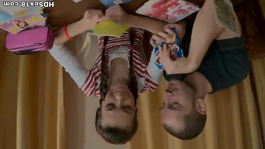 Two thirsting folks ravage one long haired sloppy teenage rock-hard