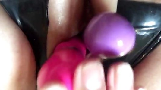 Killer Black-haired On Web Cam With Toys Dual Penetration