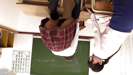 Asian lezzy helps her teenager acquaintance out with exam learning and the tribbing of their poons