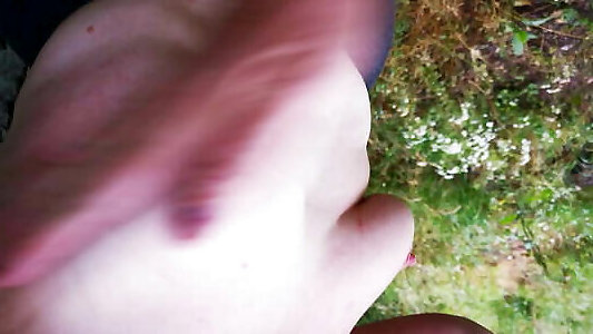 RISKY PUBLIC BLOW JOB POV AND FLASHING TITS IN THE FOREST