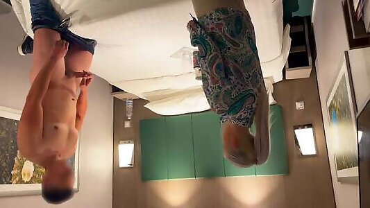 The room service cleaner catches me masturbating, I ask her if she wants to help me and she helps me finish with a blowjob