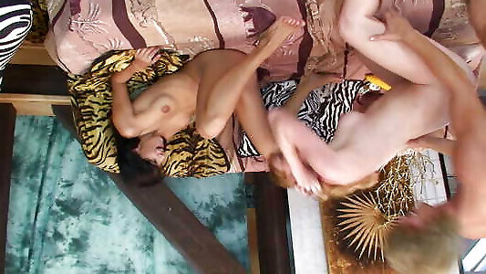 Super Hot foursome with 2 crazy babes