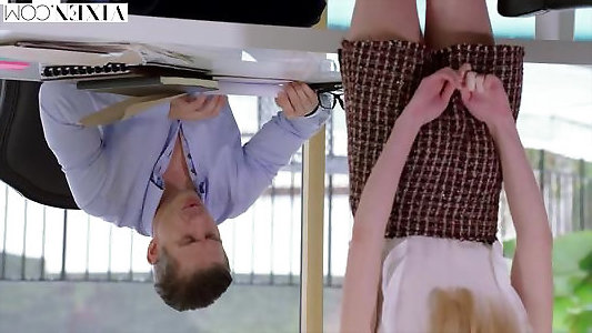 Knocked up redhead gargles and penetrates in the therapist&039;s office