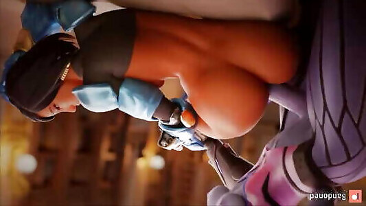 Three Dimensional toon lesbians having korean kim sawa hump in a musemum in hd
