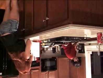 Teen girl gagged gets fucked in the kitchen! In fishnet body stockings office debts high heels!