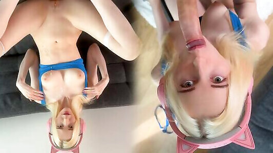 Cute blaster cumshot Girl is Fucked and Covered in Cum While Playing
