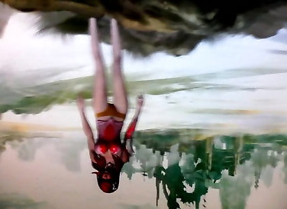 Masturbation with tights in the shower at the hotel