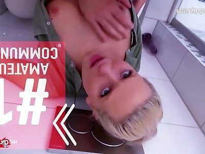 Horny blonde German bitch rides dick like a pro