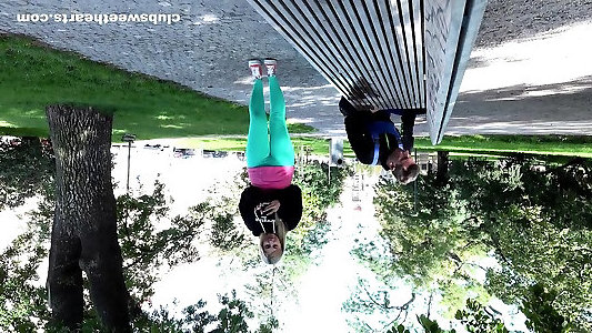 Handsome honey luving it as her pinkish beaver womfucks woman munched outdoors
