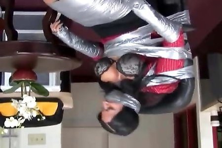 plumbing an japanese gimp victim tape ball-gagged with silver duct gauze