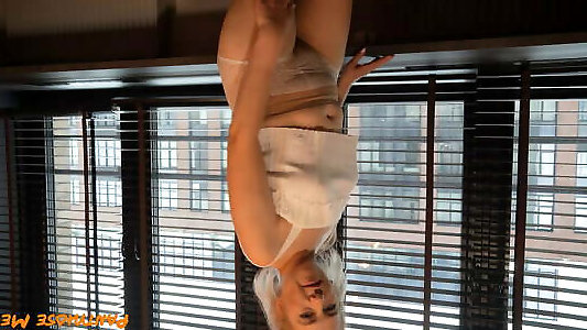 Blond nylon babe shows nylon ass and nylon feet and masturbate her pussy in pantyhose