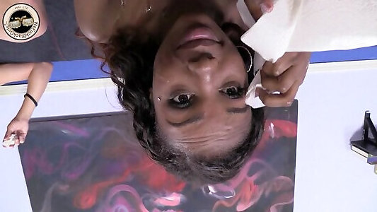 Dark-hued superslut gives a Point Of View deep throat to a milky boy