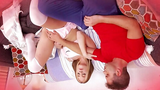Glorious Sandy-haired Sweetie Gaggs On Her Step Brothers Enormous Knob In His Guest Room