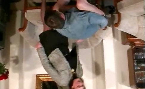 Grandma with thick faux tits likes herself on her strung up guy fucktoy