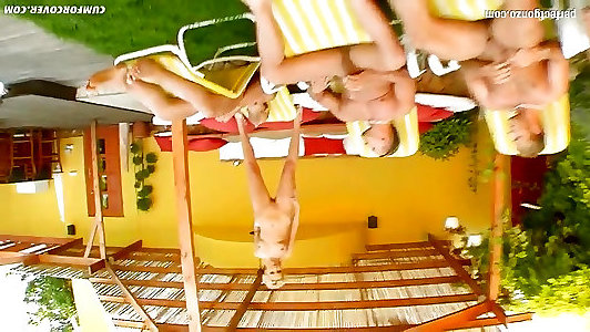 Sumptuous blondie and brown-haired getting smashed and nutted on in a fourway