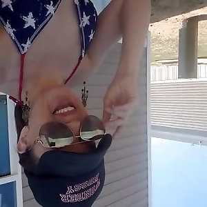 Exhibitionist wife in micro bikini and 10boy years pussy