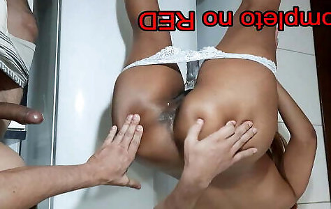 Buttfuck internal ejaculation audition with a bony dark-hued haired bitch