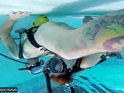 Ardent and nasty Hungarian scuba diver Minnie sunny lenone licking clip is poked underwater