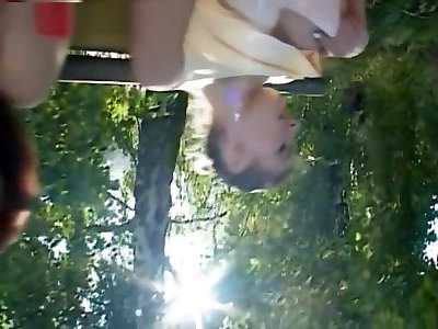 Nasty man enjoying as they double fuck stunning stunner outdoors