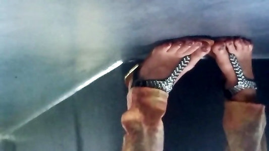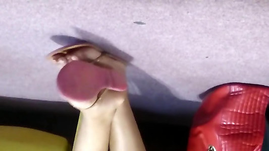 Candid School Woman Spectacular Soles and Gams in Spin Flops