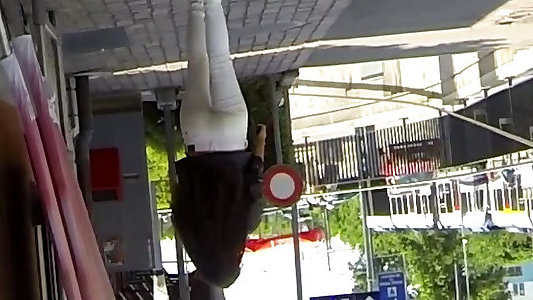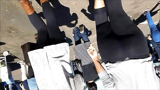 Street asion school girl movios is filmed by a voyeur stud passing by