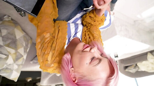 Steamy ash-blonde throating lollipop point of view and guzzling spunk