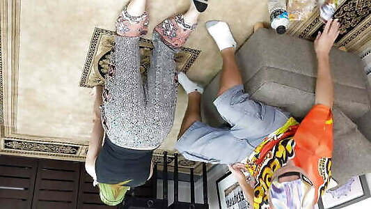 I catch my stepmother with transparency, her thong is visible and she asks me to record ourselves fucking