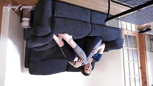 Big ass amateur girl in tight leggings grinding making him cum on himself