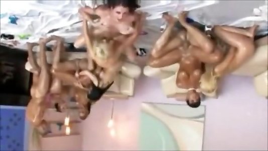 Sexy Tanned and Pale Oiled Lesbian Bodies Together