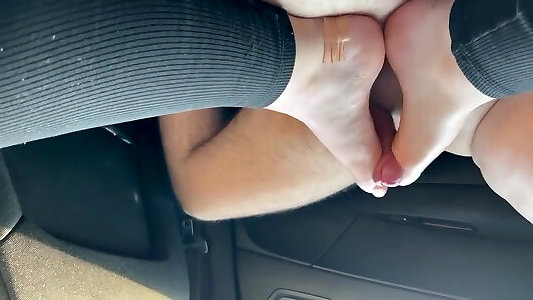 Hot Blonde Footjob with Long Toenails Ends with Cum on Feet