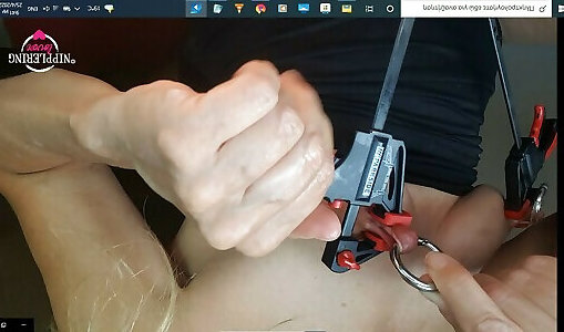 nippleringlover super-naughty cougar putting poke forceps on extraordinary stretched nip piercings