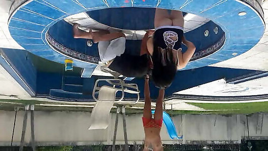 Stomping stomach. Domme Nika walks on her marionette&039;s tummy