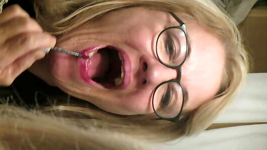 Lovely mature doll in medic fake stockings sensuously smashes herself with a fake penis!