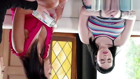 Pretty nubile Eva Lovia and stepmom indian yong cout Summer share a spear