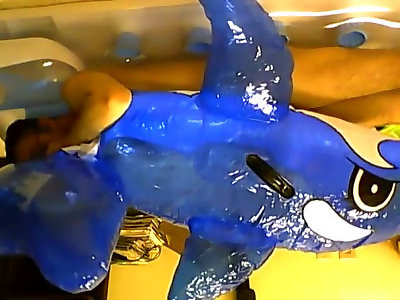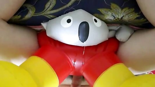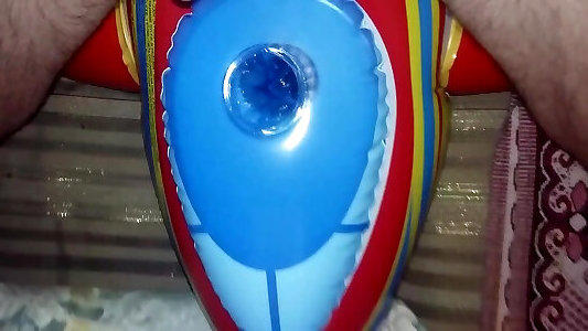 Balloons and rubber plastic fetish - Bixanie plays with squealing sounds and inflates a long penis-shaped balloon