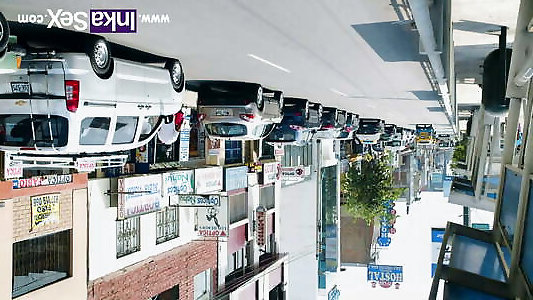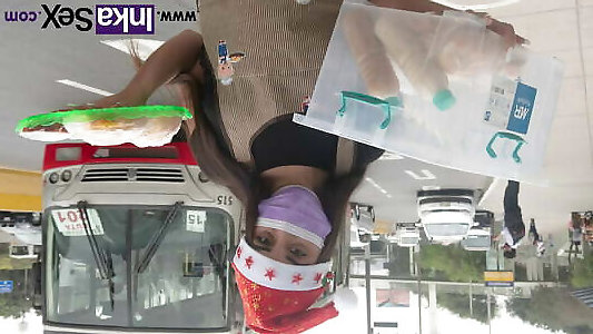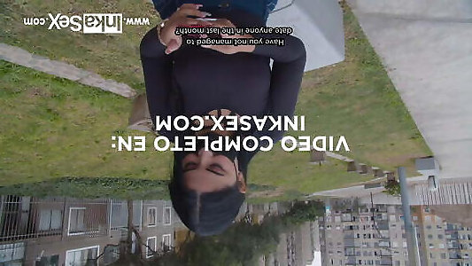 Petite Peruana is surprised by her morbid neighbor on the streets of Lima