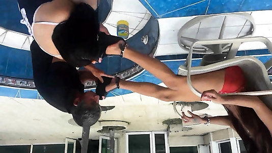 Real red-haired amid liu furry honeypot enjoy salsa outdoors 1
