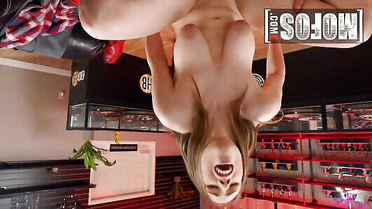 Fit blond waitress Jacky Fun has her pinkish cooch ravaged