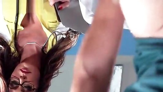 Jessica fake doctor and pacient gets a pop jizzload on her new throat after ravaging