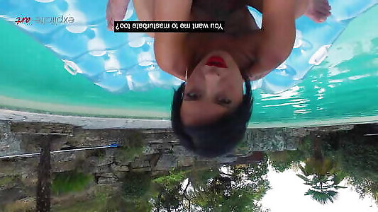 French Brunette japanese in racing queen uniform in the Swimming Pool